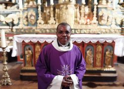 "Demandons à la Vierge Marie,qui a généreusement offert son "me voici" en participant à l’œuvre du salut,d’intercéder pour nous et de nous accompagner sur le chemin à la suite du Seigneur."